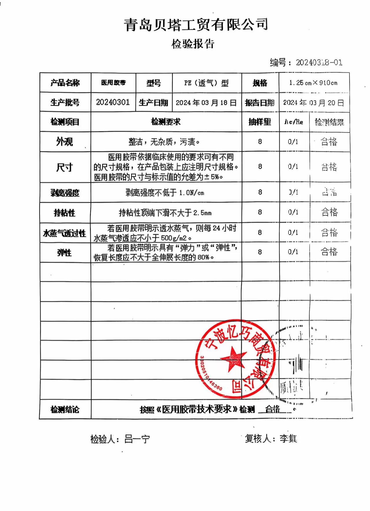 贝塔PE透气胶带1.25cm*910cm(24卷/盒特价) 质检单