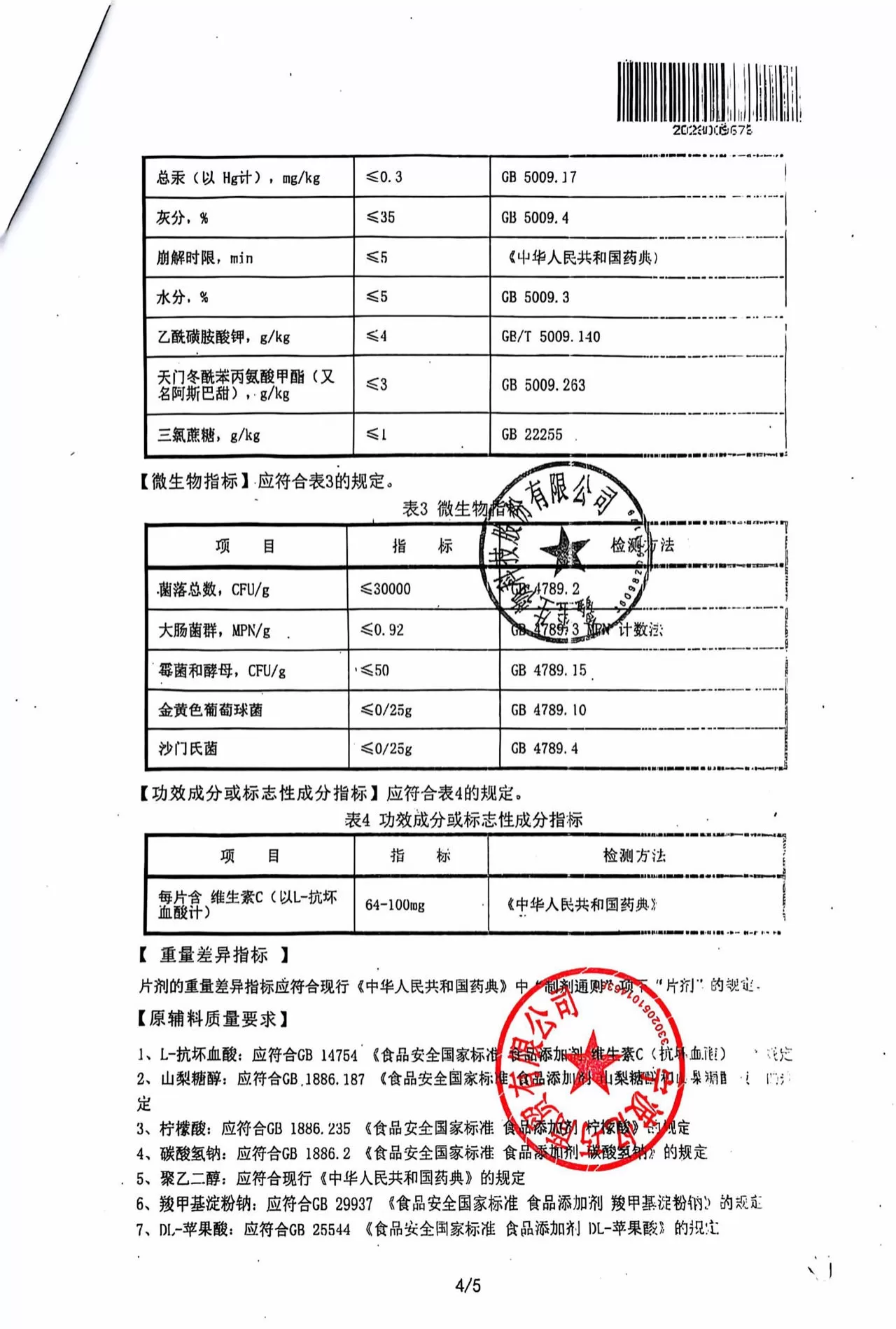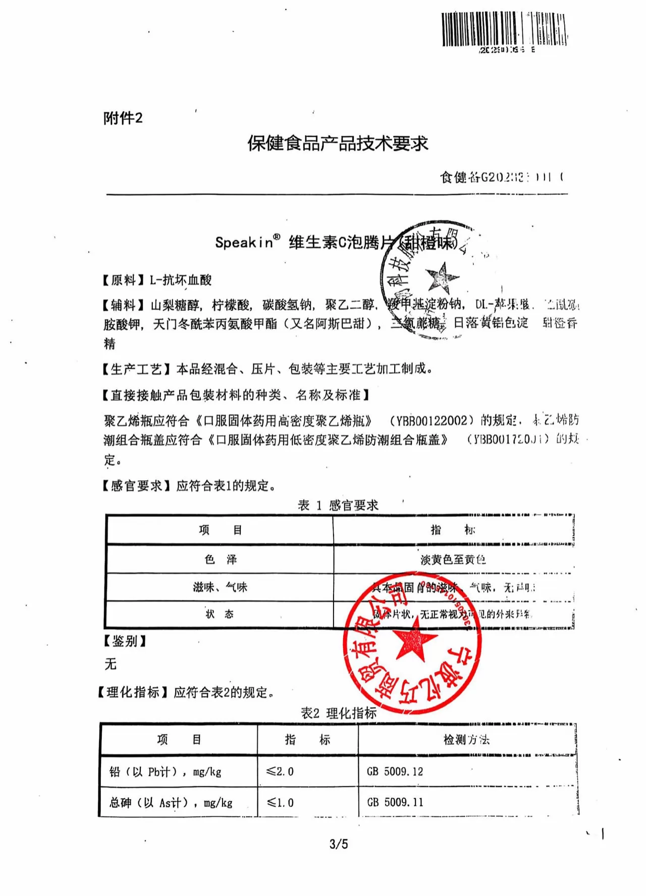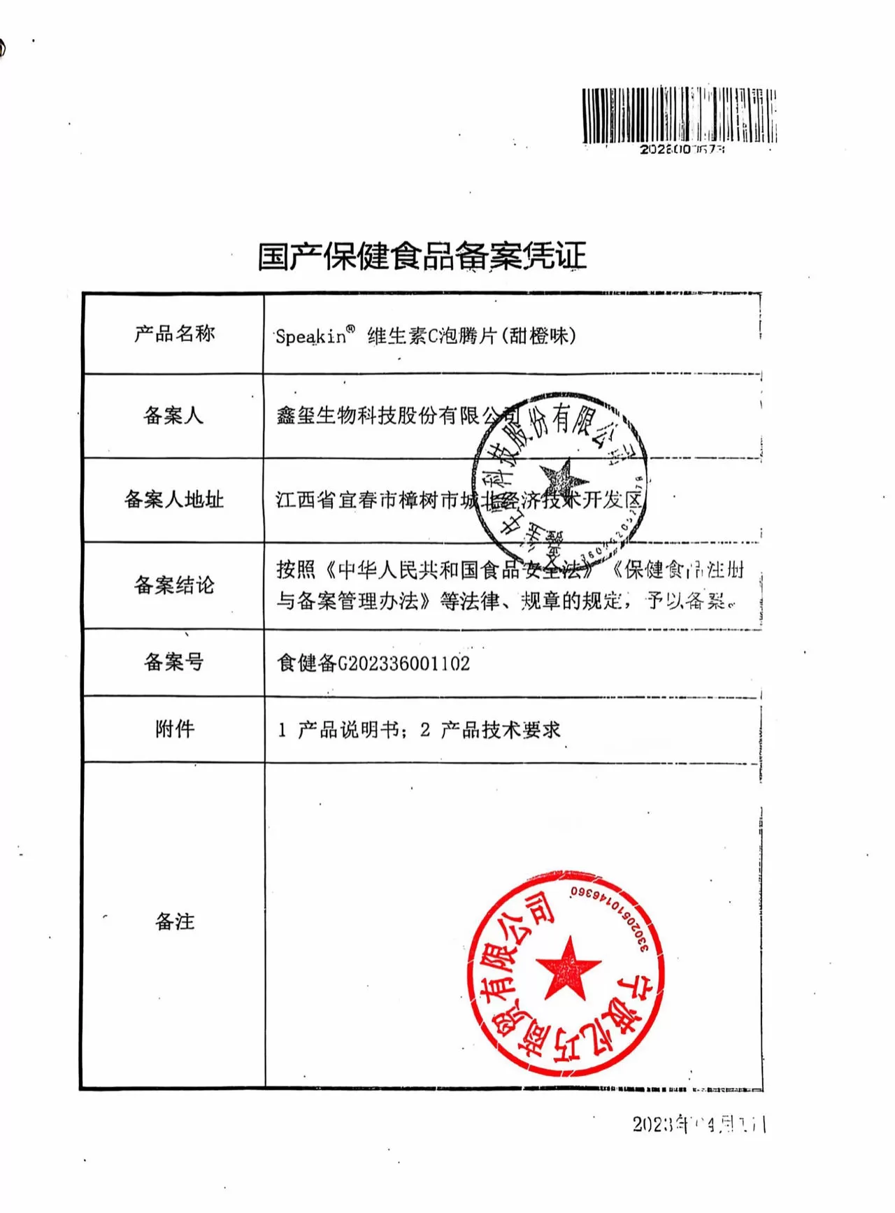 鑫玺Speakin®维生素C泡腾片(甜橙味)4g/片*20片【5送1】 产品资料