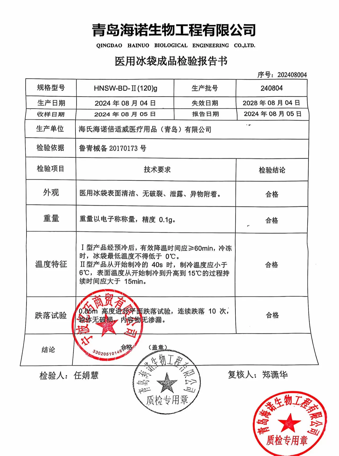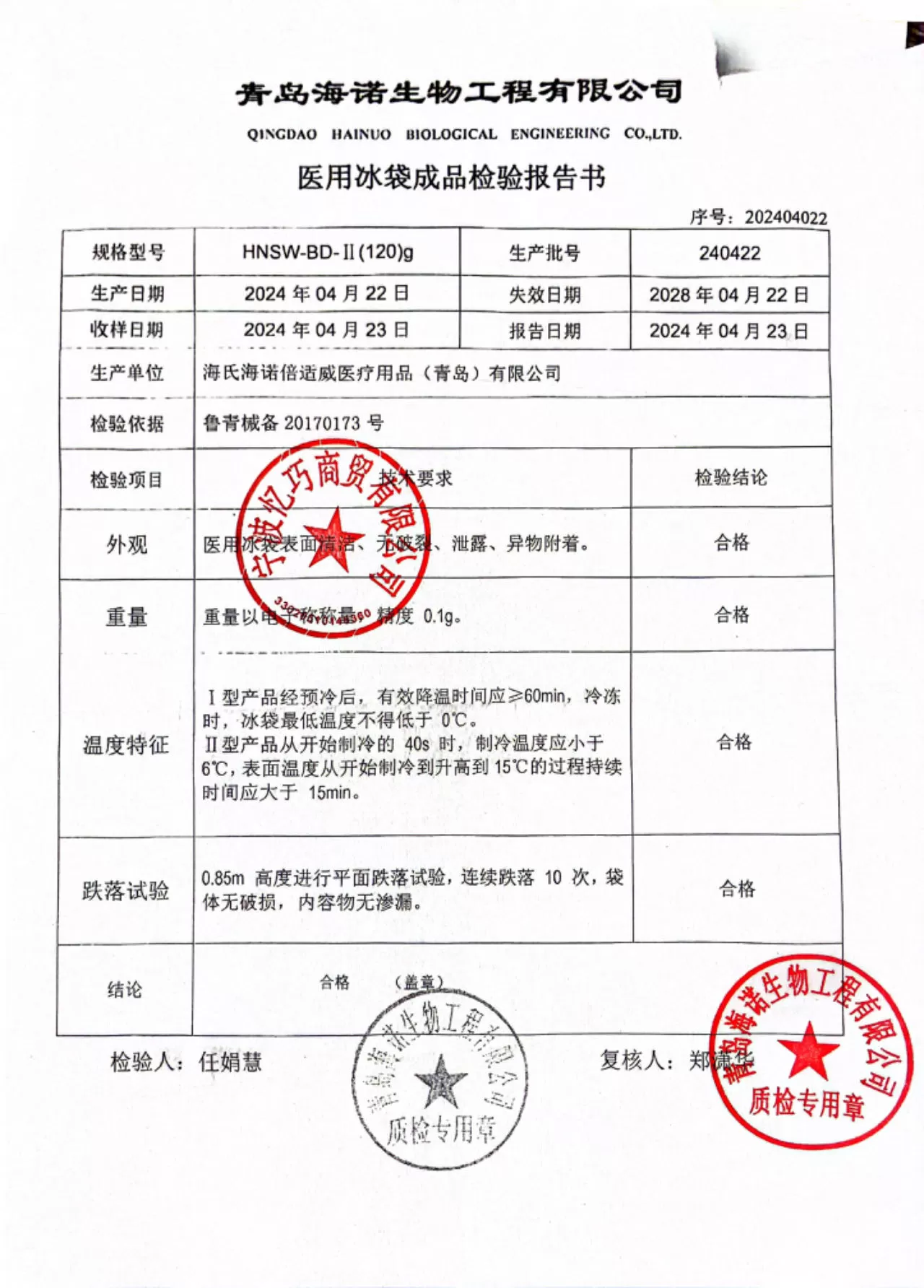 海氏海诺医用冰袋120g/袋【一盒6袋】 质检单