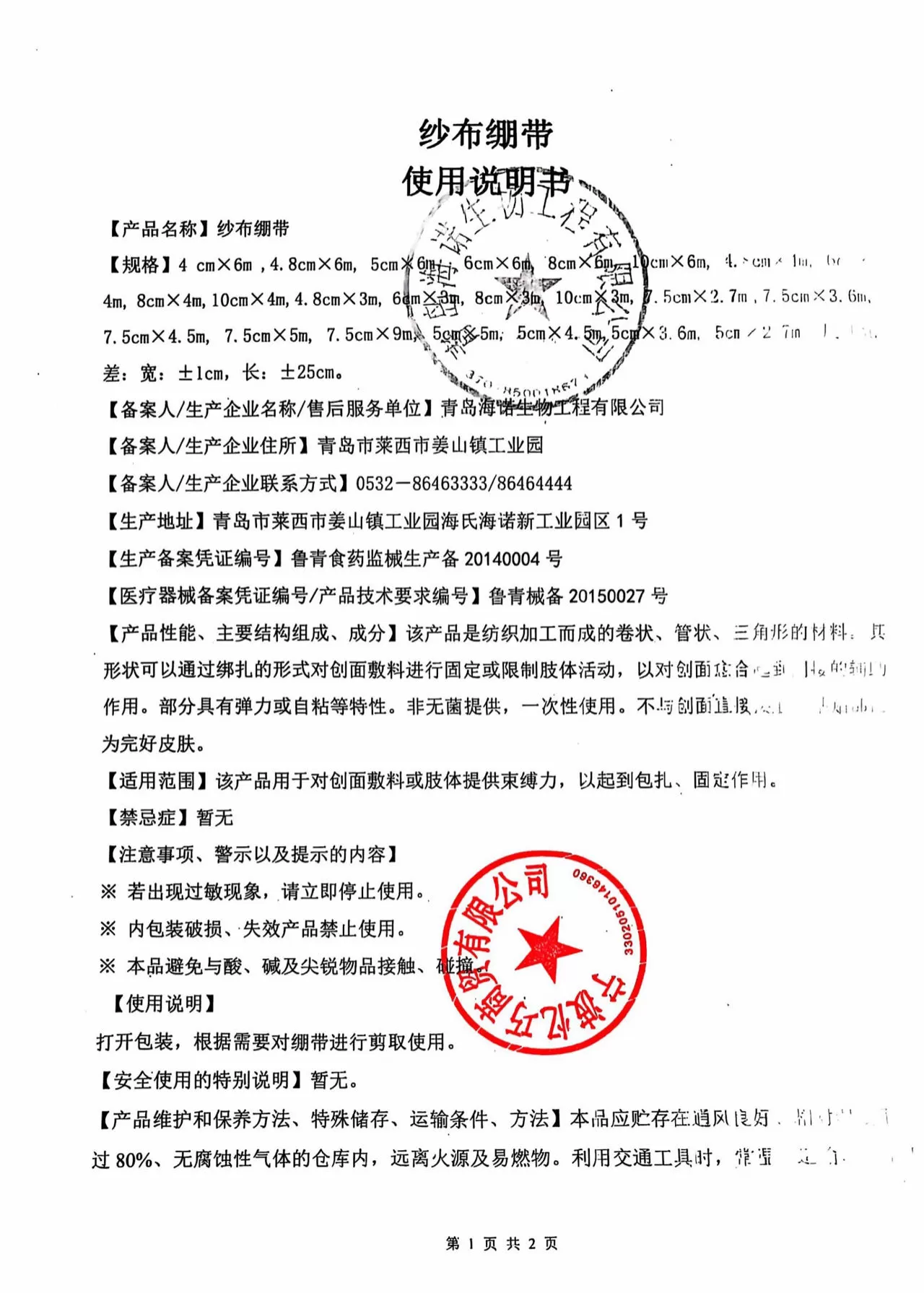 海氏海诺纱布绷带1卷装6cm*6m 产品资料