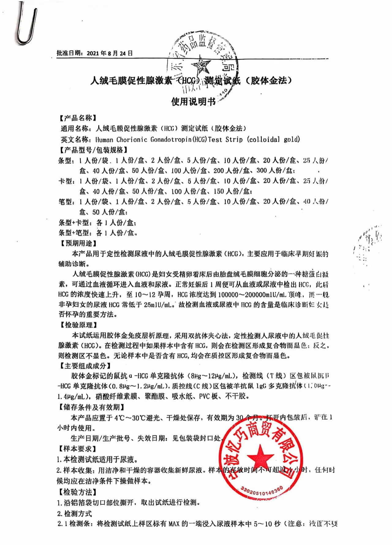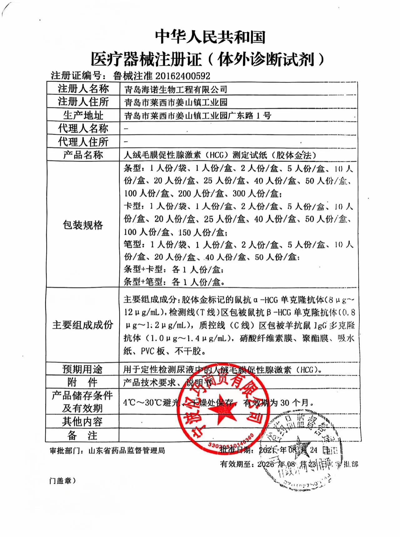 海氏海诺人绒毛膜促性腺激素(早早孕试纸)笔型1人份/盒 产品资料