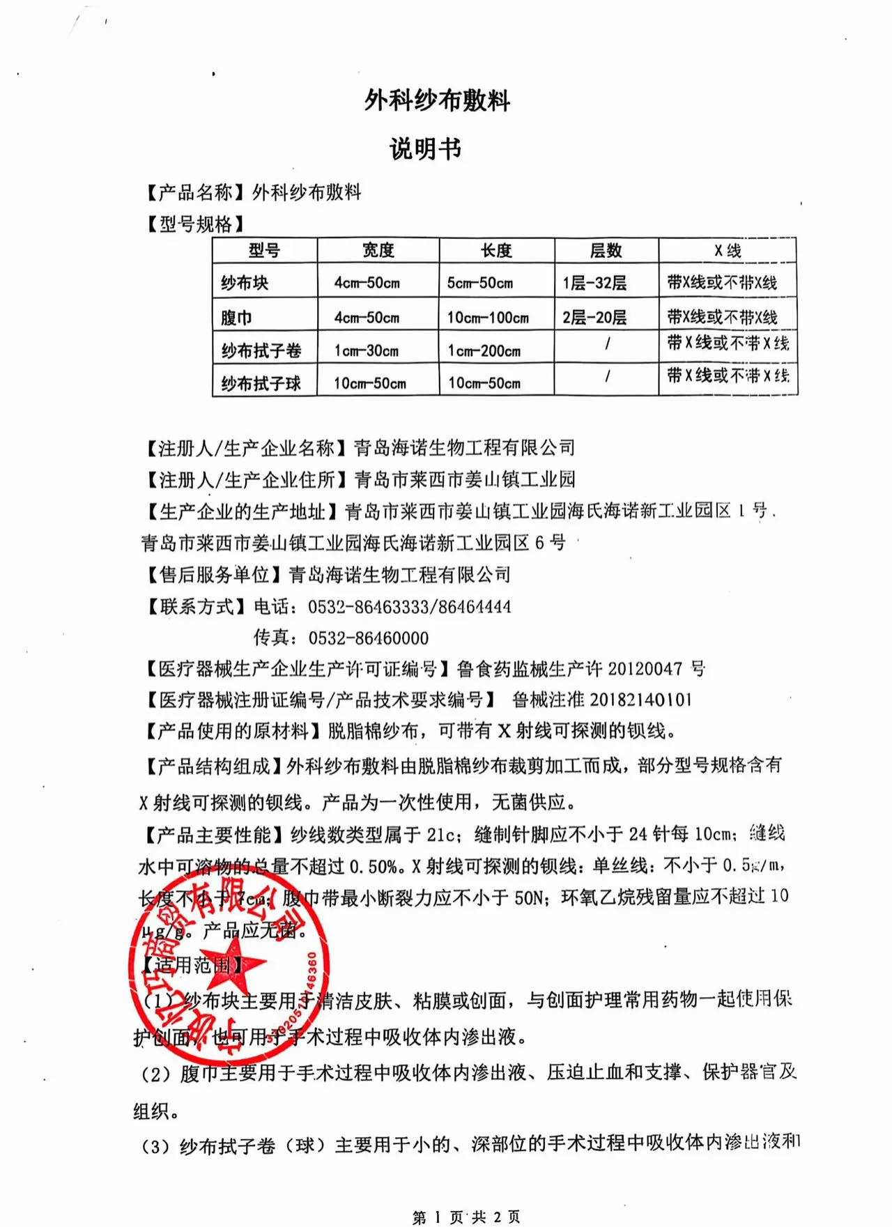 海氏海诺外科纱布敷料纱布块5片/袋6cm*8cm 产品资料