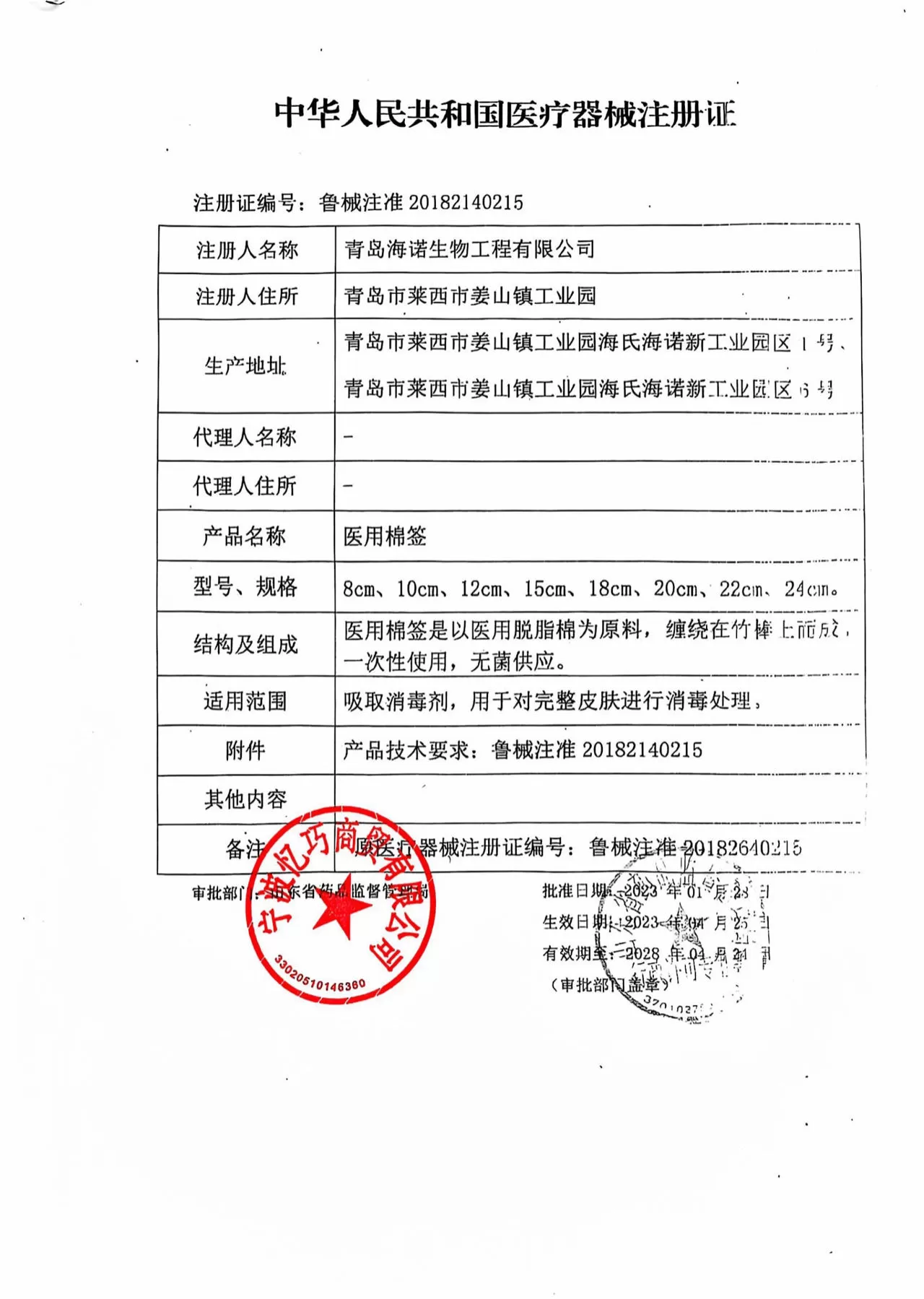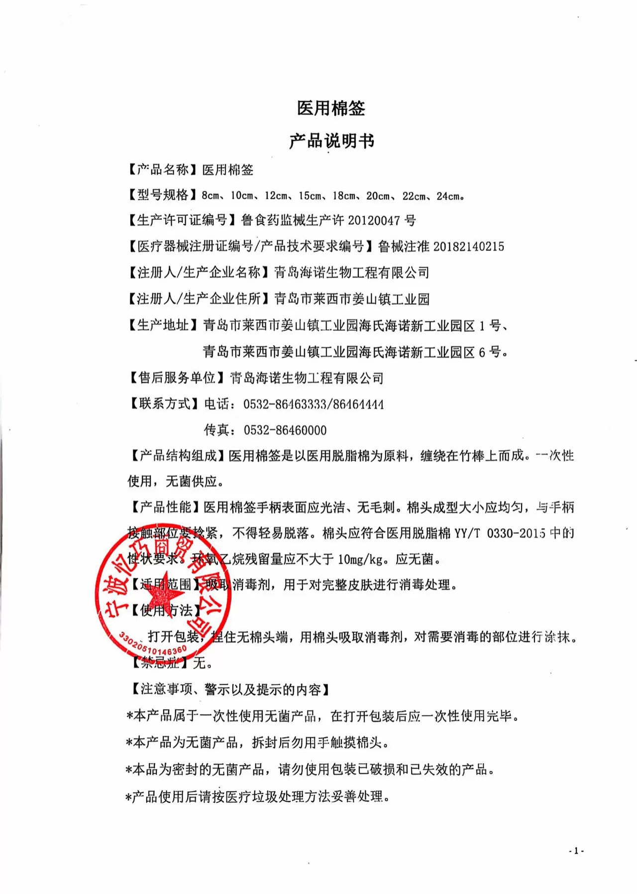 海氏海诺医用棉签二类无菌50支装10cm【40袋/包】 产品资料