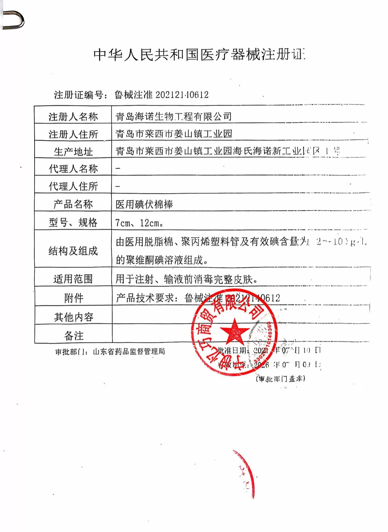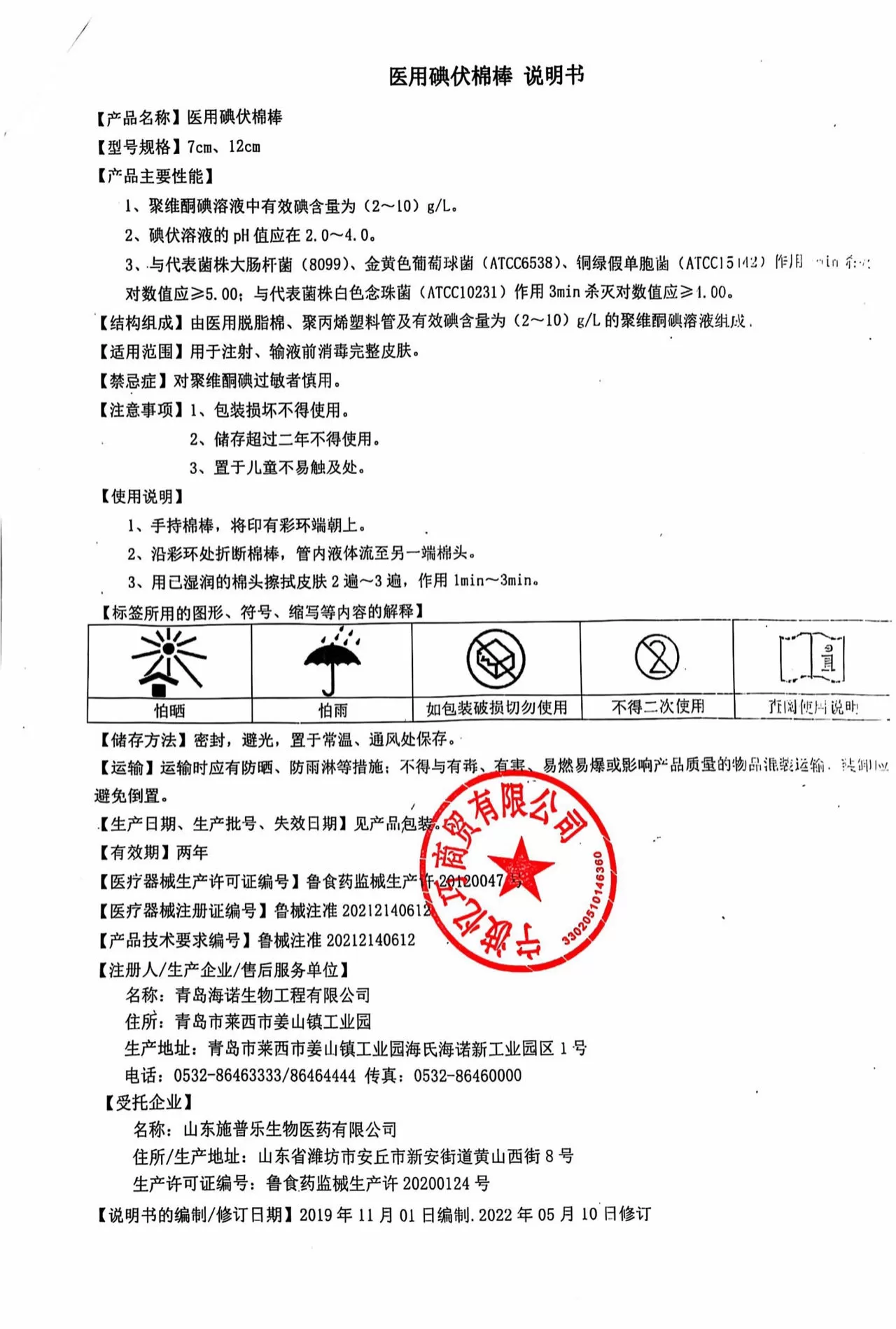 海氏海诺医用碘伏棉棒棉签20支装7cm 产品资料