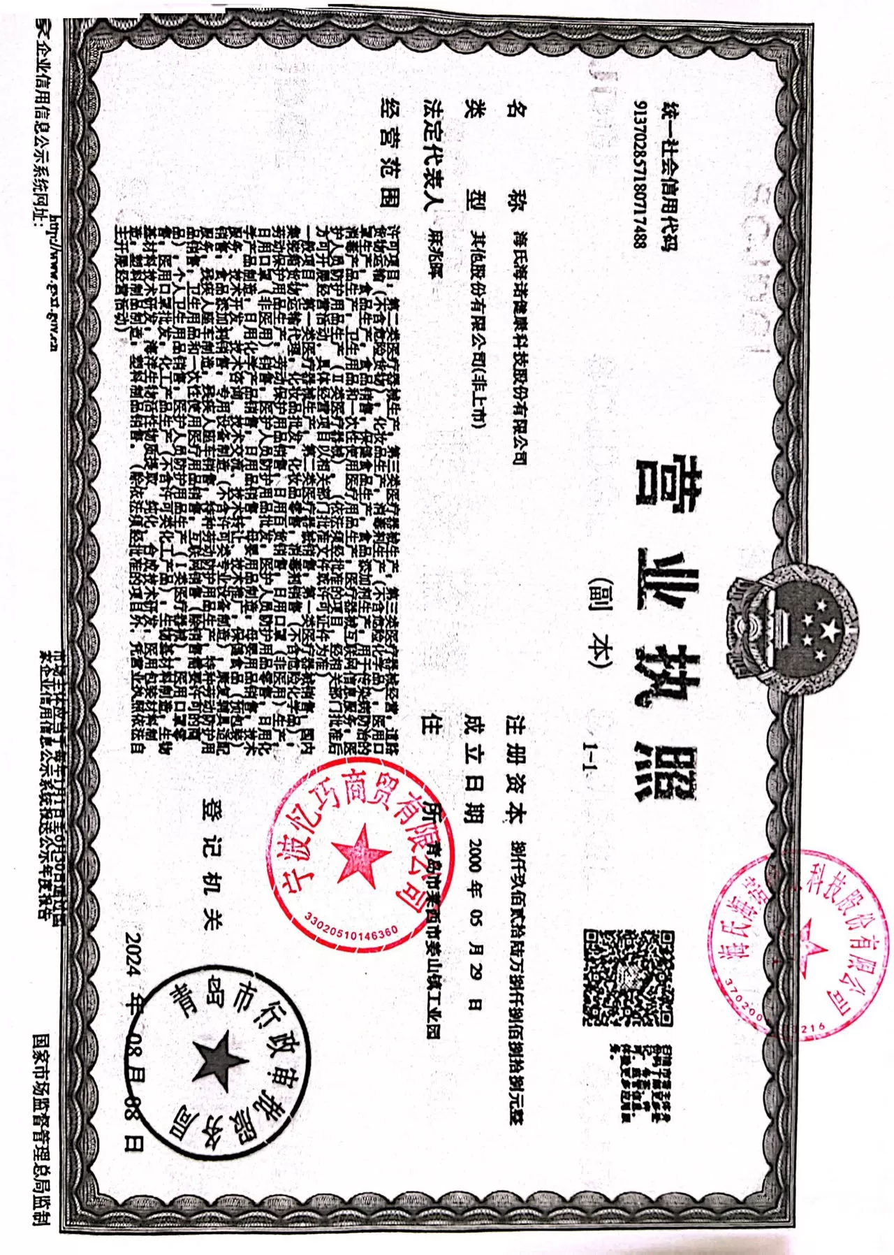 首页 > 医疗器械 > 海氏海诺脱脂棉球50g装 > 企业资料