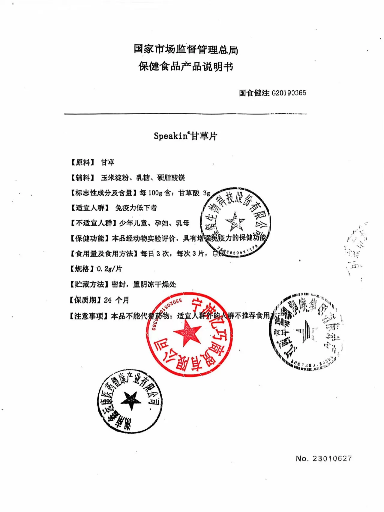 南杨先生鑫玺甘草片100片(20g) 产品资料