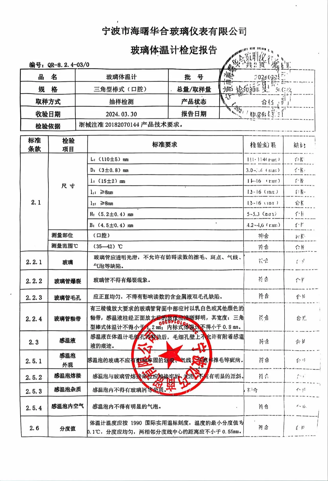 三山玻璃体温计三角棒式(口腔)折后价 质检单