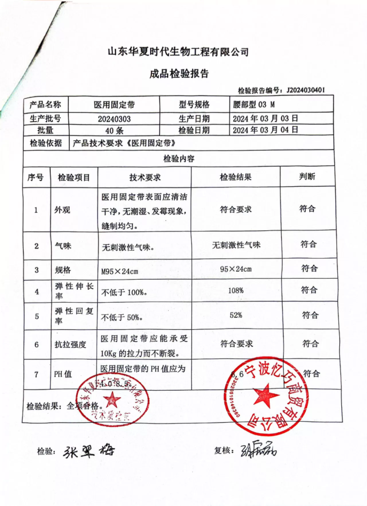 盛世医疗医用固定带加强型腰部型M码 质检单