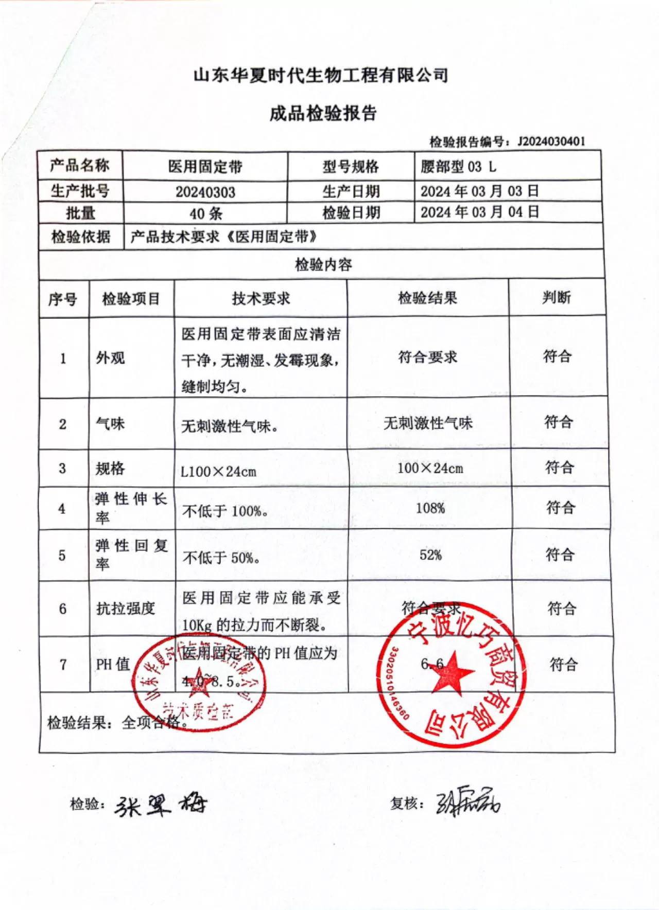 盛世医疗医用固定带加强型腰部型L码 质检单