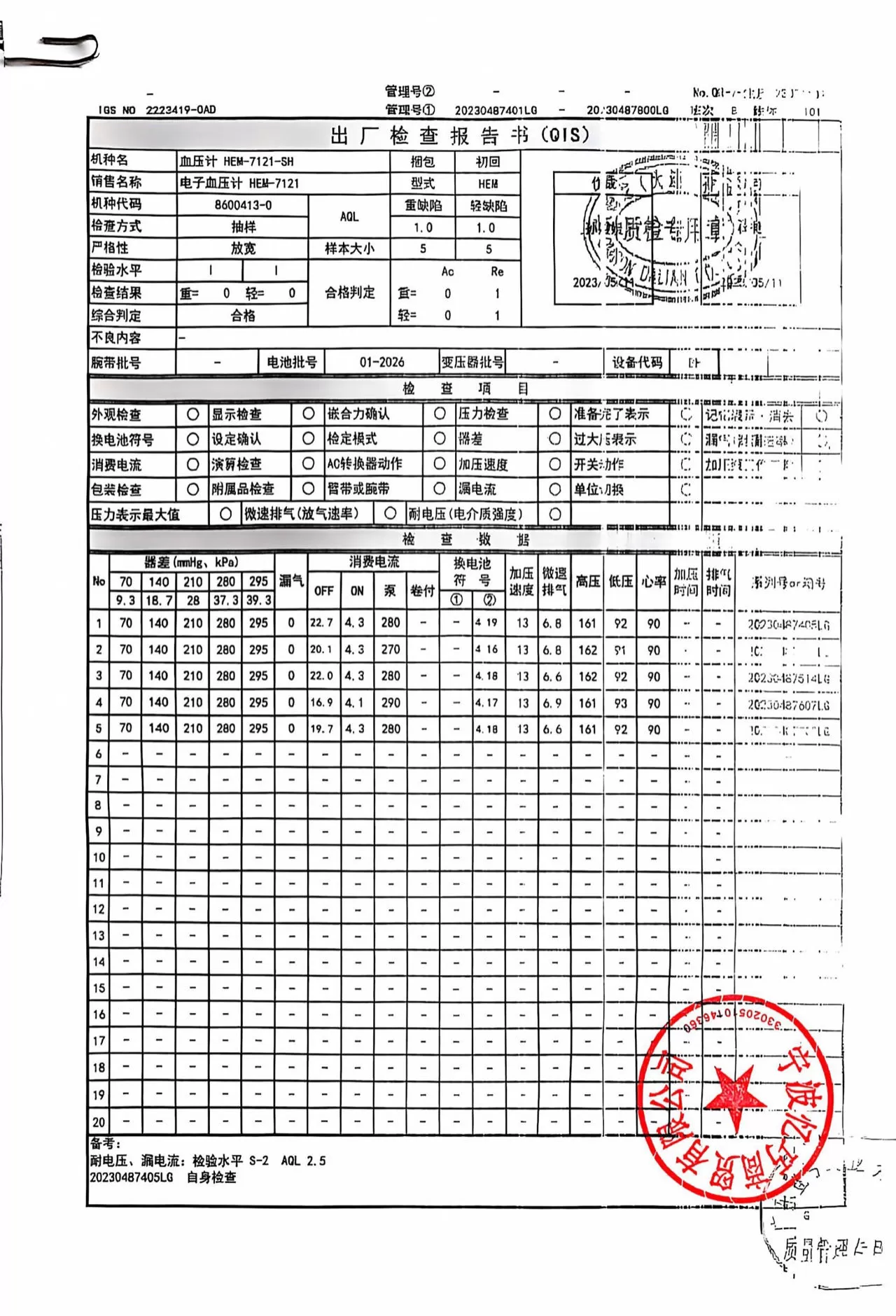欧姆龙电子血压计HEM-7121【折后价】送通用充电线1个 质检单