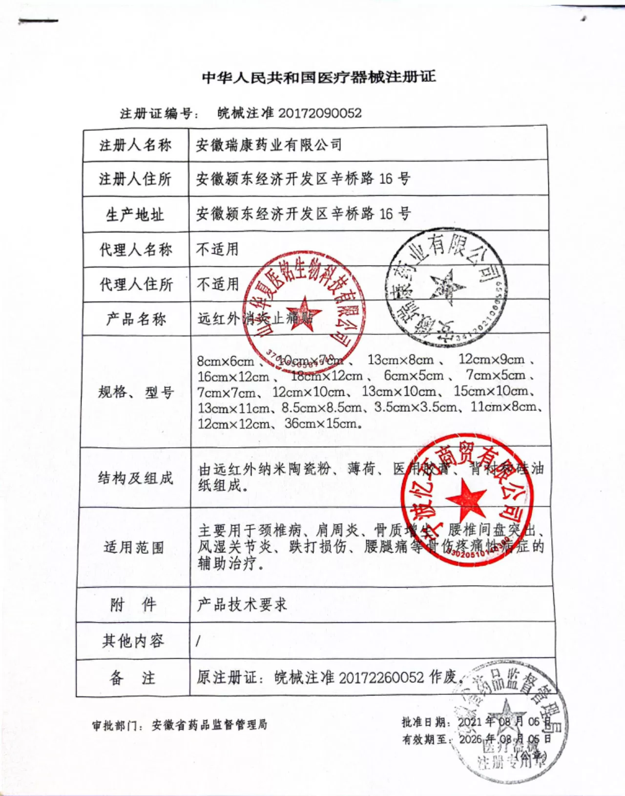华夏医铭远红外(跌打损伤)8贴装【二类器械】 产品资料
