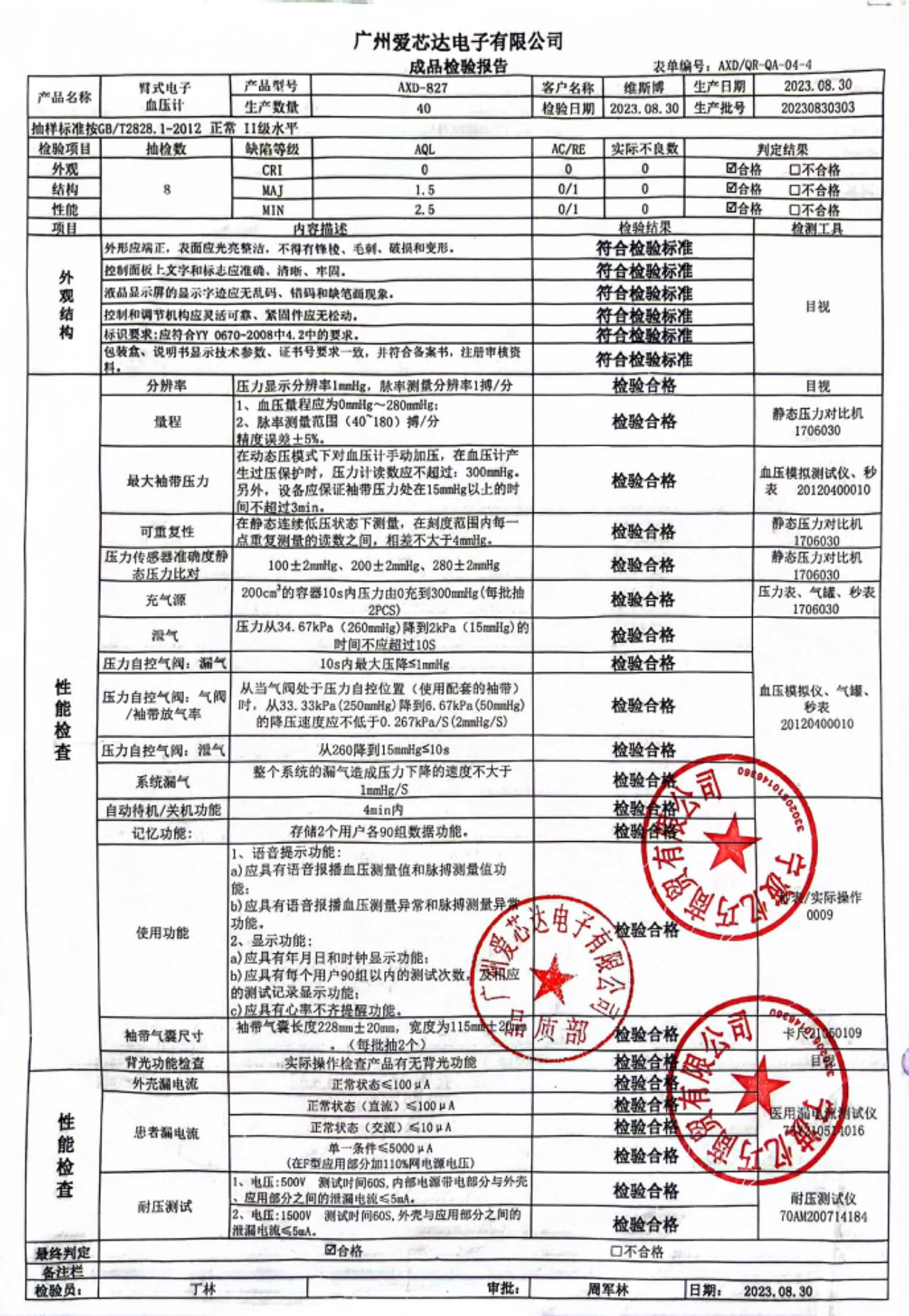 维斯博血压计语音型AXD-827两年包换,线上禁售 质检单