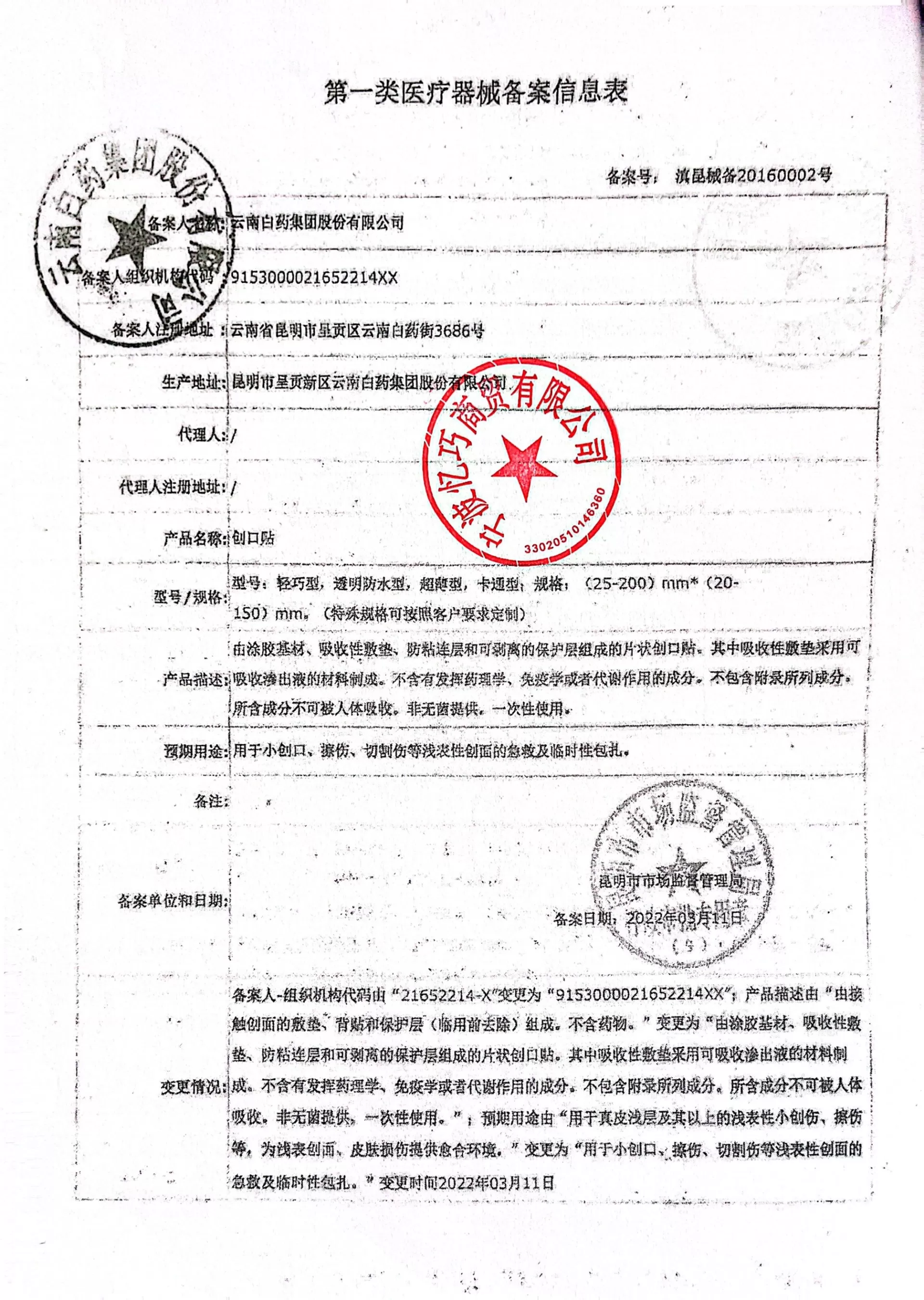 云南白药泰邦透明防水创口贴10片/盒 产品资料