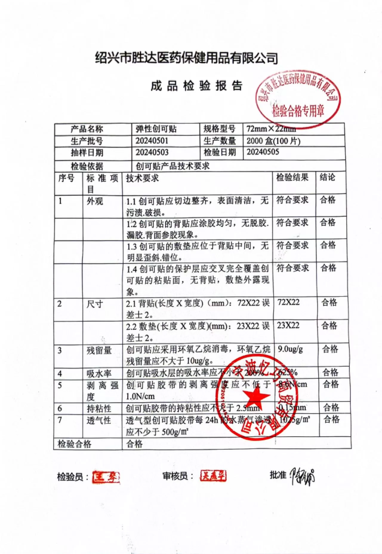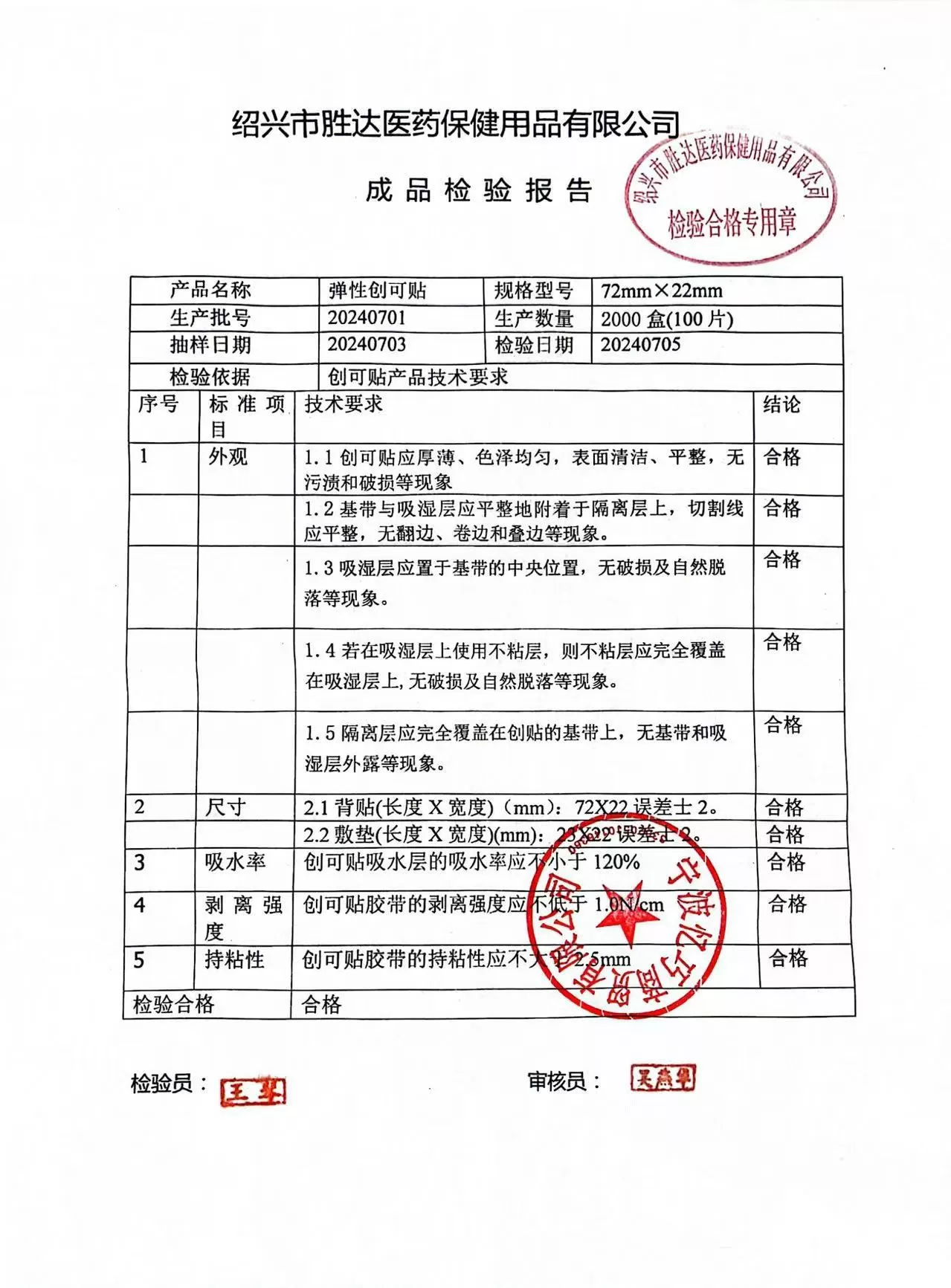 邦亚弹性舒适创可贴100片(可刷医保) 质检单