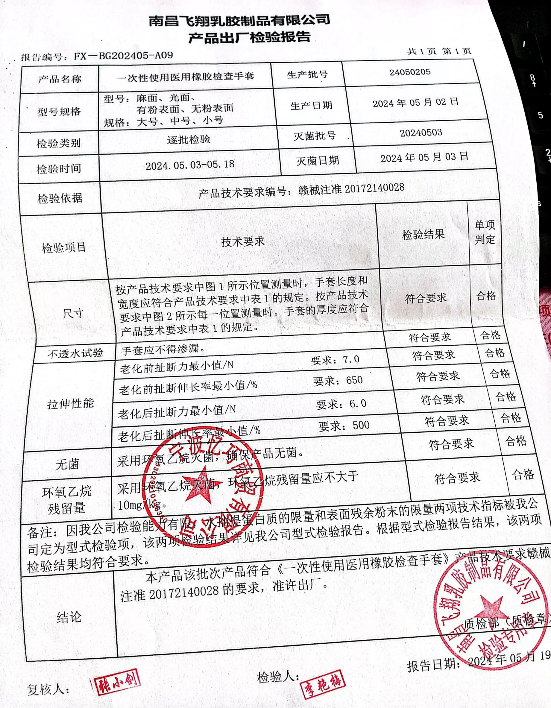 飞翔医用橡胶检查手套【1副装】【10送1】 质检单