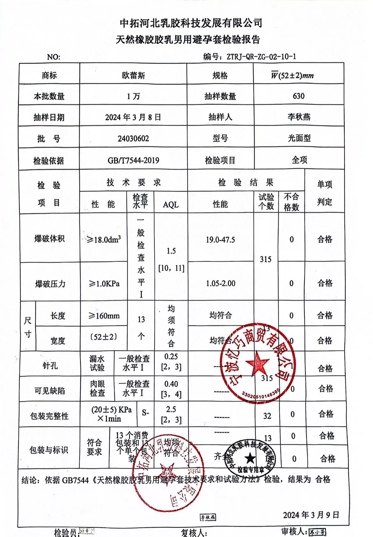 欧蕾斯超薄装天然乳胶避孕套(12只) 质检单
