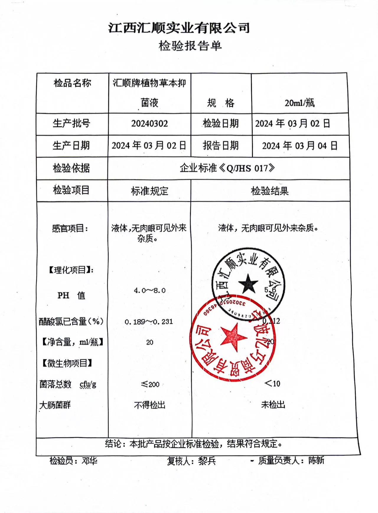 香港大药房净味香体腋露20ml【消字号】 质检单