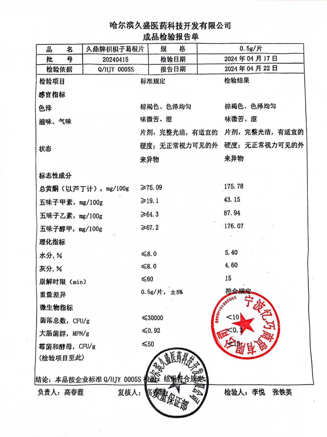 海量九鼎牌枳椇子葛根片【解酒】6片 质检单
