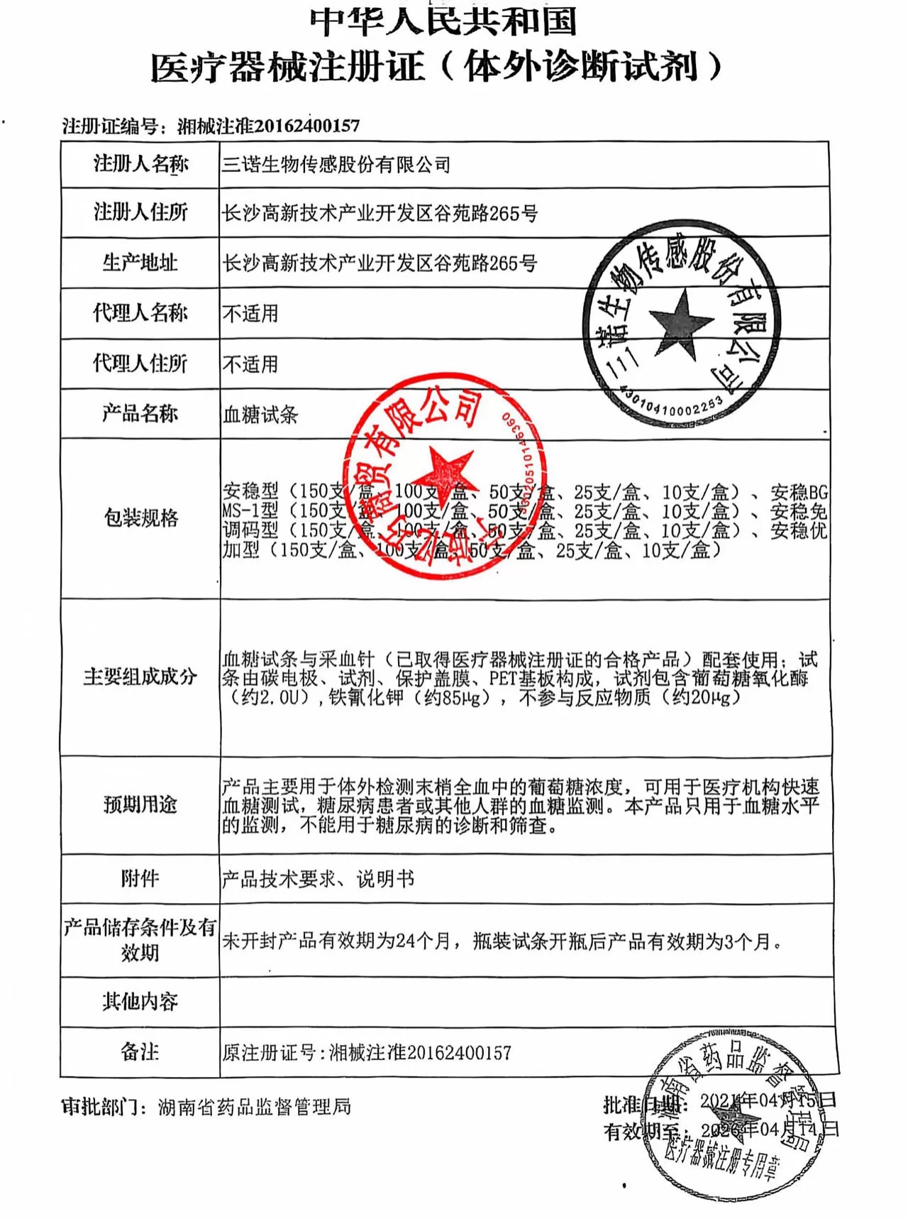 三诺安稳+血糖测试条试纸瓶装 企业资料