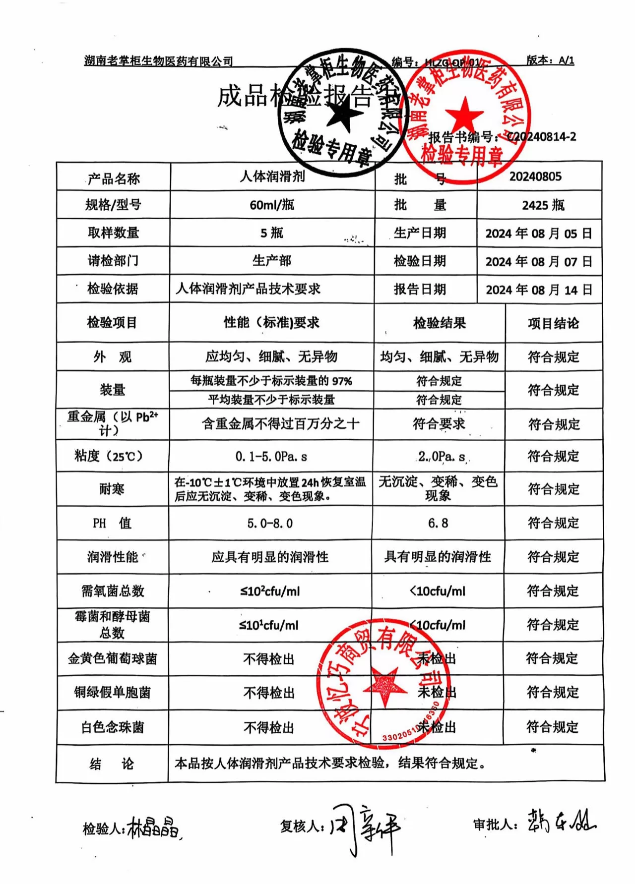 哆啦薇薇九色潮水人体润滑剂 质检单