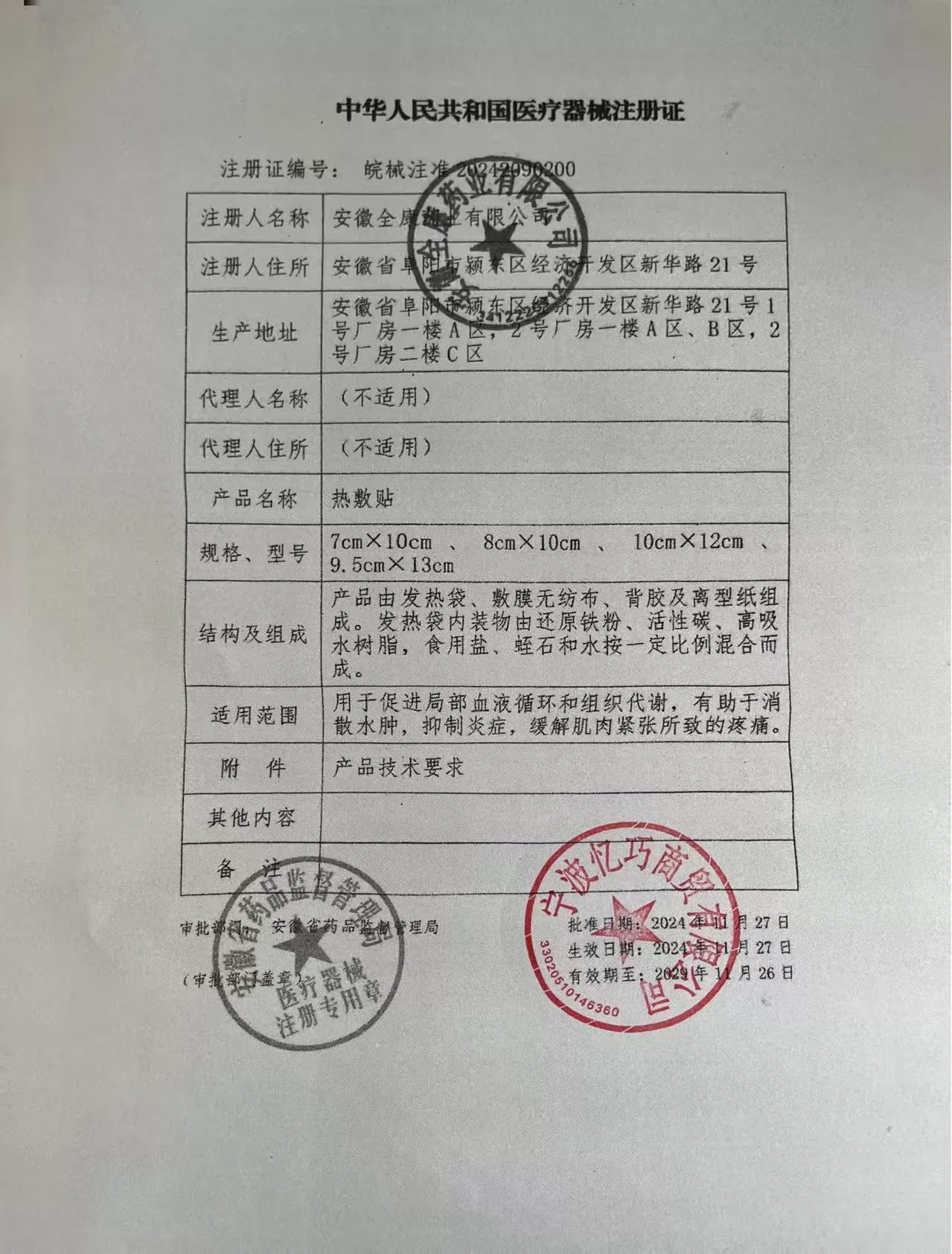 九春堂暖宫贴热敷贴(6贴)二类器械 产品资料