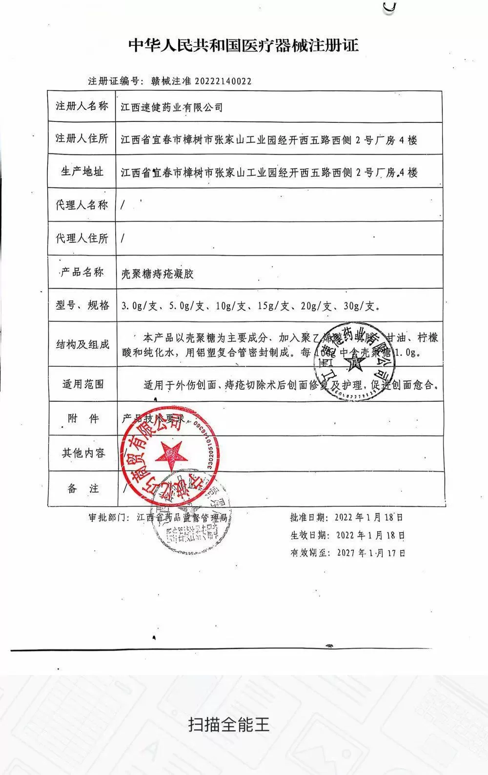 华北制药壳聚糖痔疮凝胶20g【二类器械】 产品资料