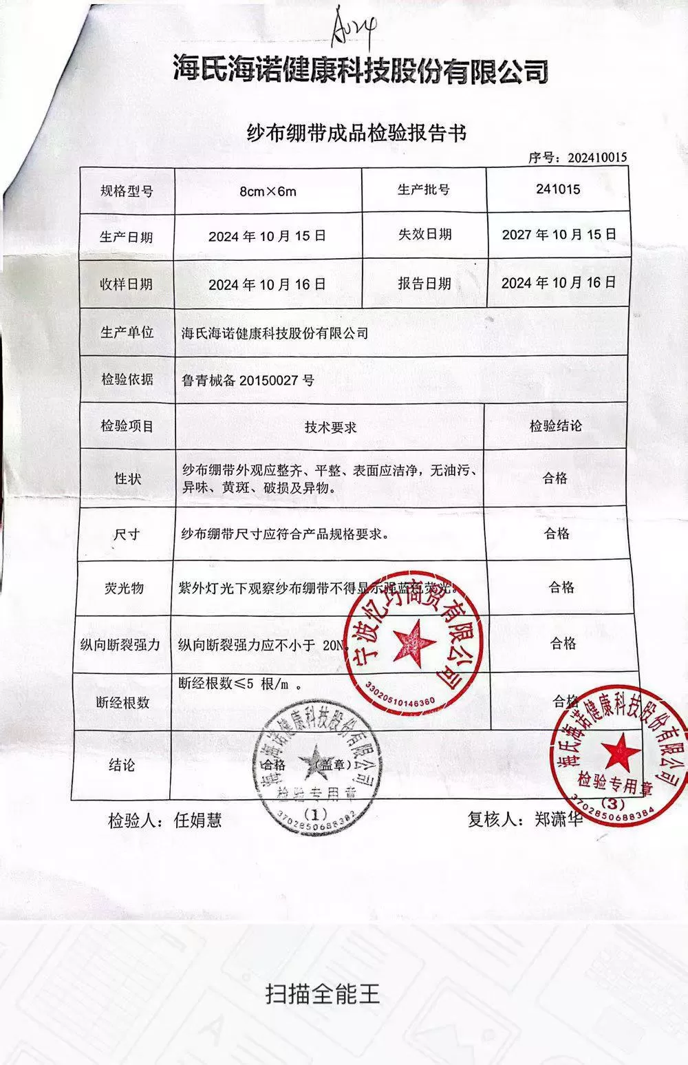 海氏海诺纱布绷带8cm*600cm*2卷 质检单