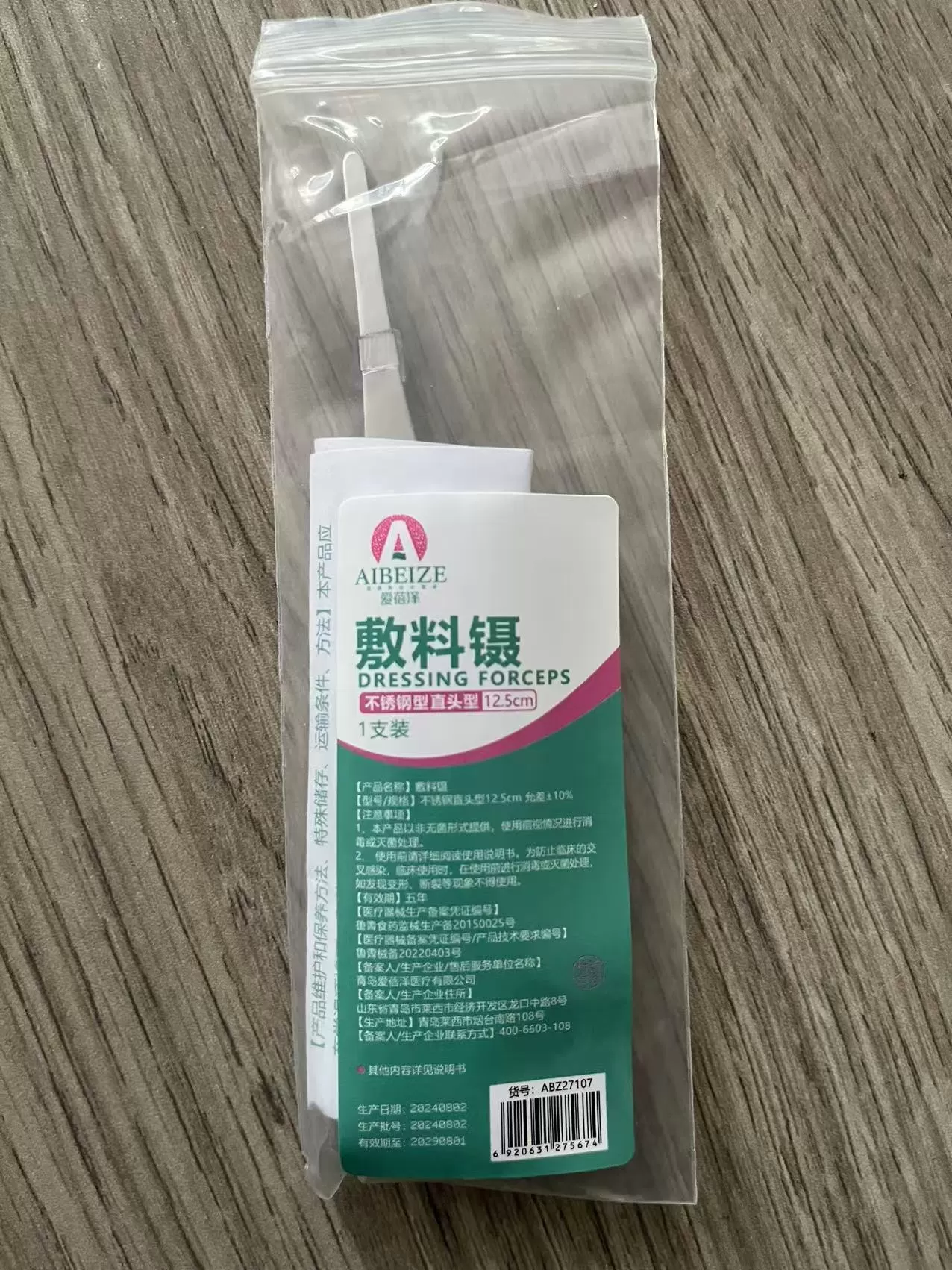 爱蓓泽镊子不锈钢直头型12.5cm【械字号】