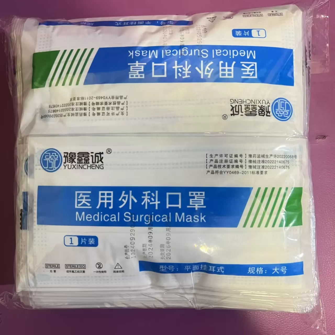 豫鑫诚医用外科口罩成人单片装100片/袋