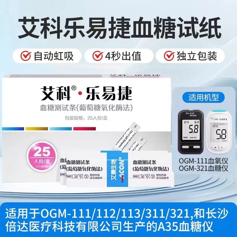艾科乐易捷血糖试条血糖试纸25人份【进5盒送1盒】