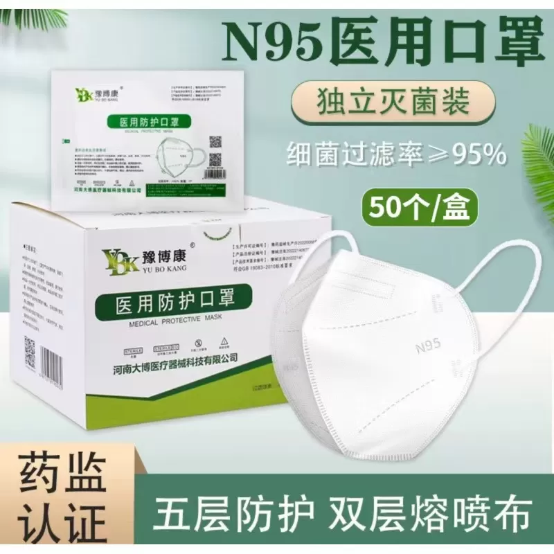 豫博康N95医用口罩独立装成人【单片价】